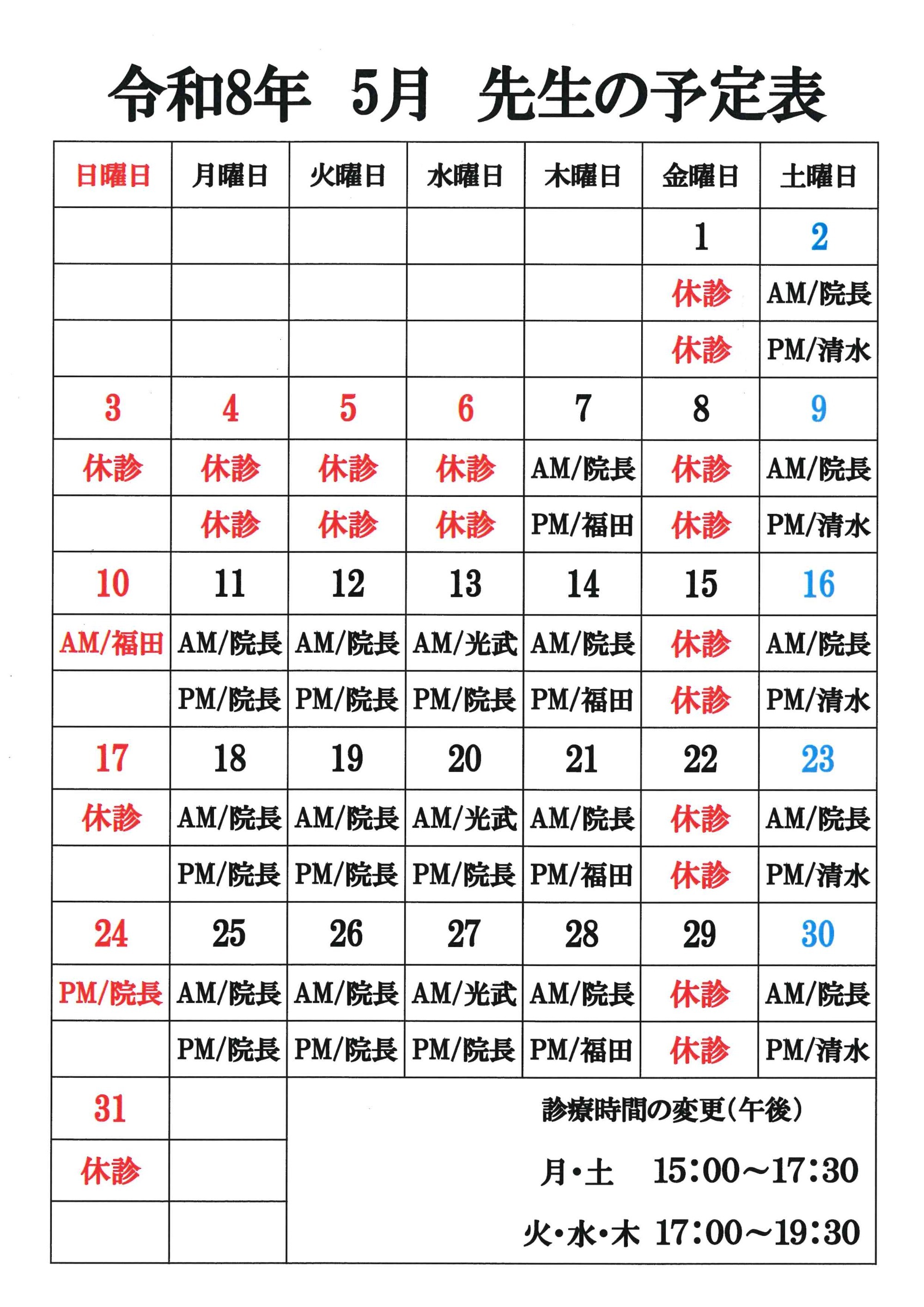 診療日…12日(福田) 26日(院長)